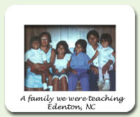 Edenton, North Carolina June 1987-September 1987 After arriving in Virginia I spent a couple days in Roanoke getting some direction from the Mission President and then I was off to Edenton, North Carolina. I was assigned to work with Sister Evans. She would be training me. The two of us boarded a bus in Roanoke headed to Norfolk. As we reached the Norfolk area our bus driver some how got lost and didn't know how to find the bus station. We eventually found the station where an LDS member from Edenton was waiting to give us a ride from there. We replaced a set of Elders who had been serving there for some time. Since neither one of us knew the area at all we had to spend some time just learning the area and looking at a lot of maps. We also had the help of the local LDS membership. One of the challenges we faced was the great distances the area covered. In the middle of this area was a great big body of water called the Albemarle Sound. To get to Church each week we had to travel three miles each way just to reach the other side. The bridge that spanned a narrow section of the Sound was a bit rickety. To the side of it was a new bridge being built to replace the old. We were in Edenton for the 4th of July. Another set of Sister missionaries joined us as we walked to the park near Edenton Bay (an arm off the Albemarle Sound) to watch the fireworks display put on by the city. Right after we arrived in Edenton a local LDS member asked if we could teach a friend of his and the friend's family. His friend was a migrant worker in the fields of Creswell County, North Carolina. The children in this family were very interested in what we were saying. Before we started teaching them one of the daughters had been listening to a tape put out by the LDS Church called Our Heavenly Father's Plan. There is a song on that tape entitled My Heavenly Father Loves Me. Those girls had listened, learned the song and sang it around the house. Whenever I hear the song of a bird
